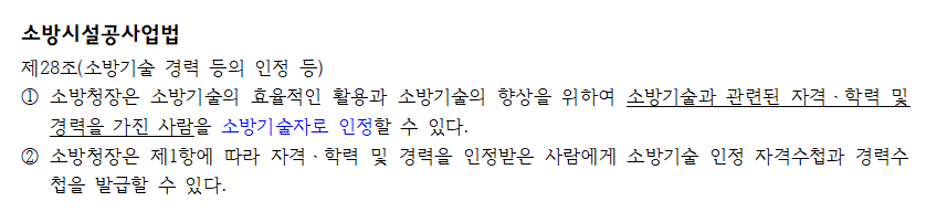 가. 법 제28조에 따라 소방기술 경력 등을 인정받는 사람