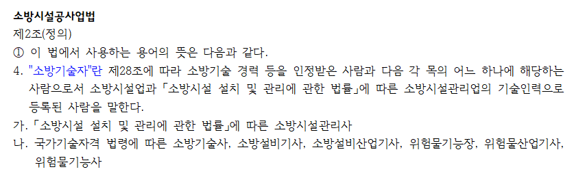 가. 소방시설공사업법 용어의 정의에서 말하는 소방기술자